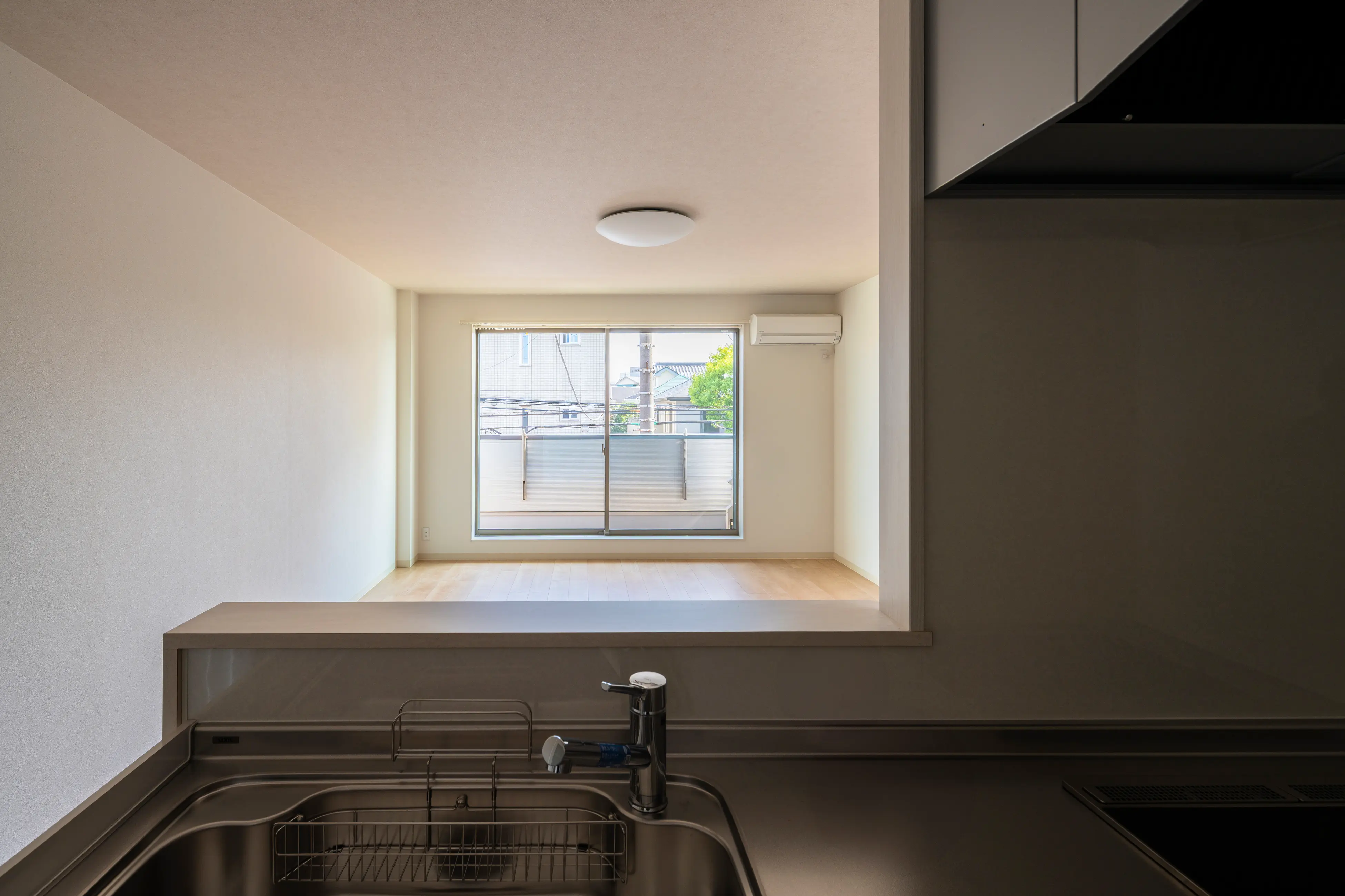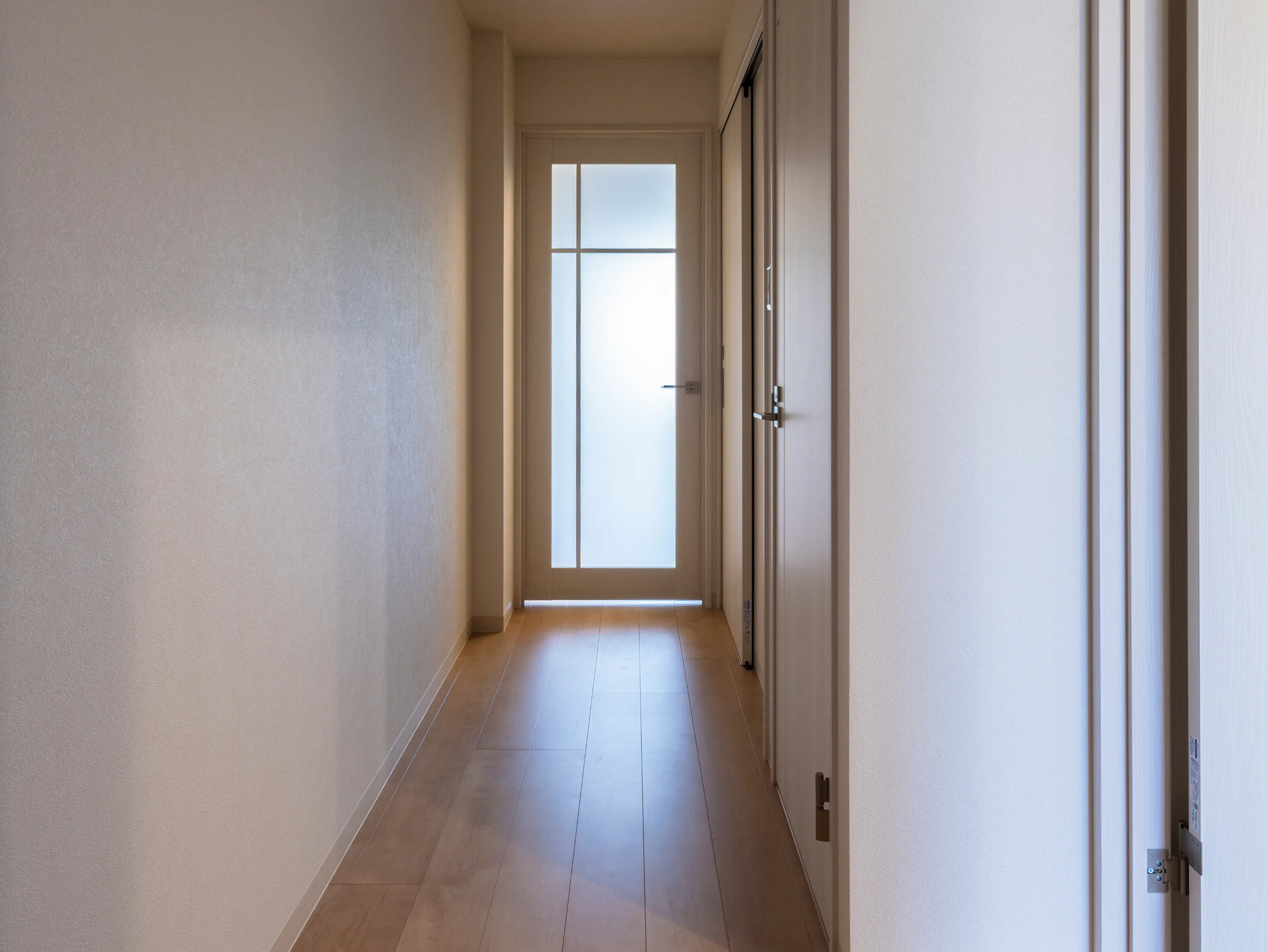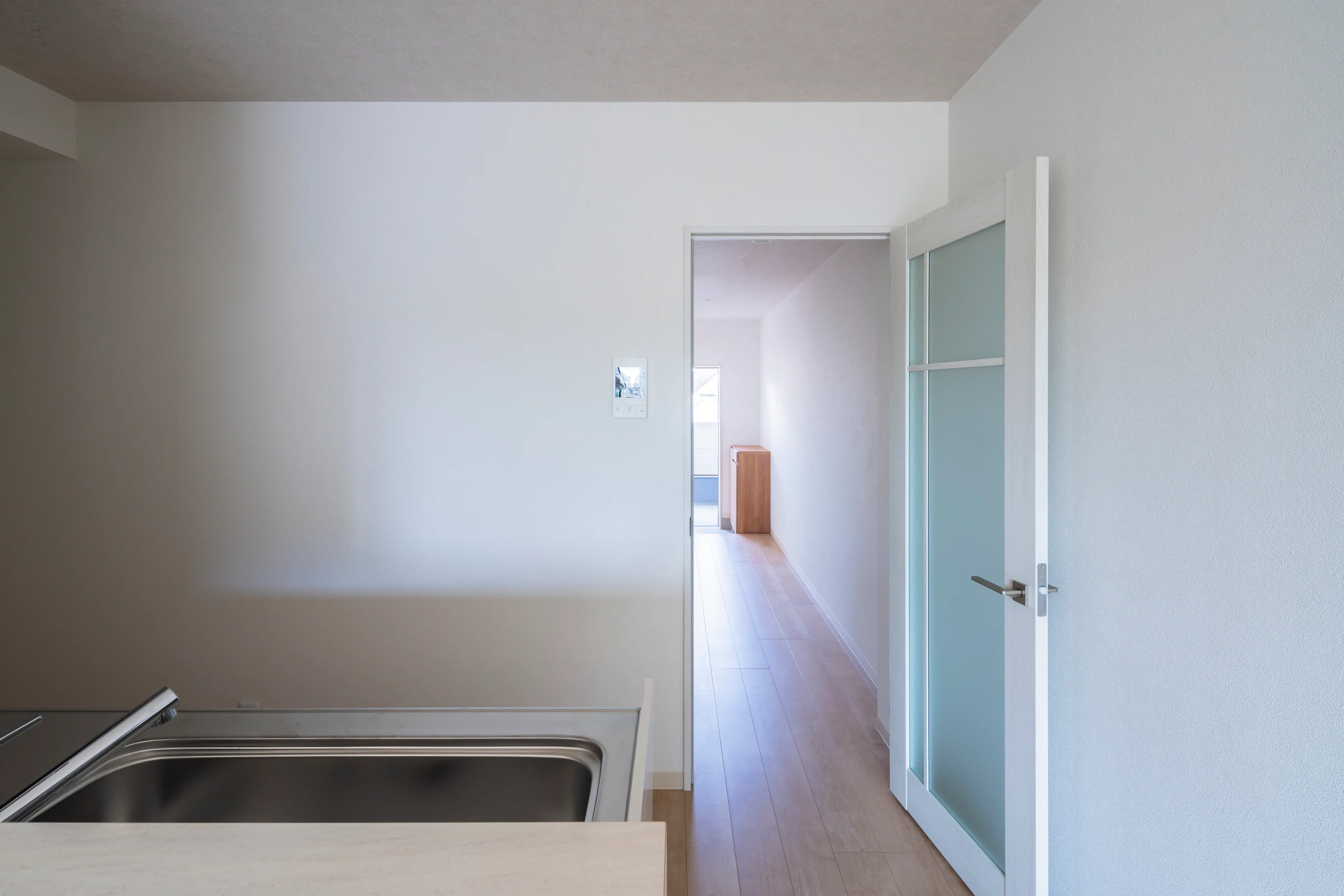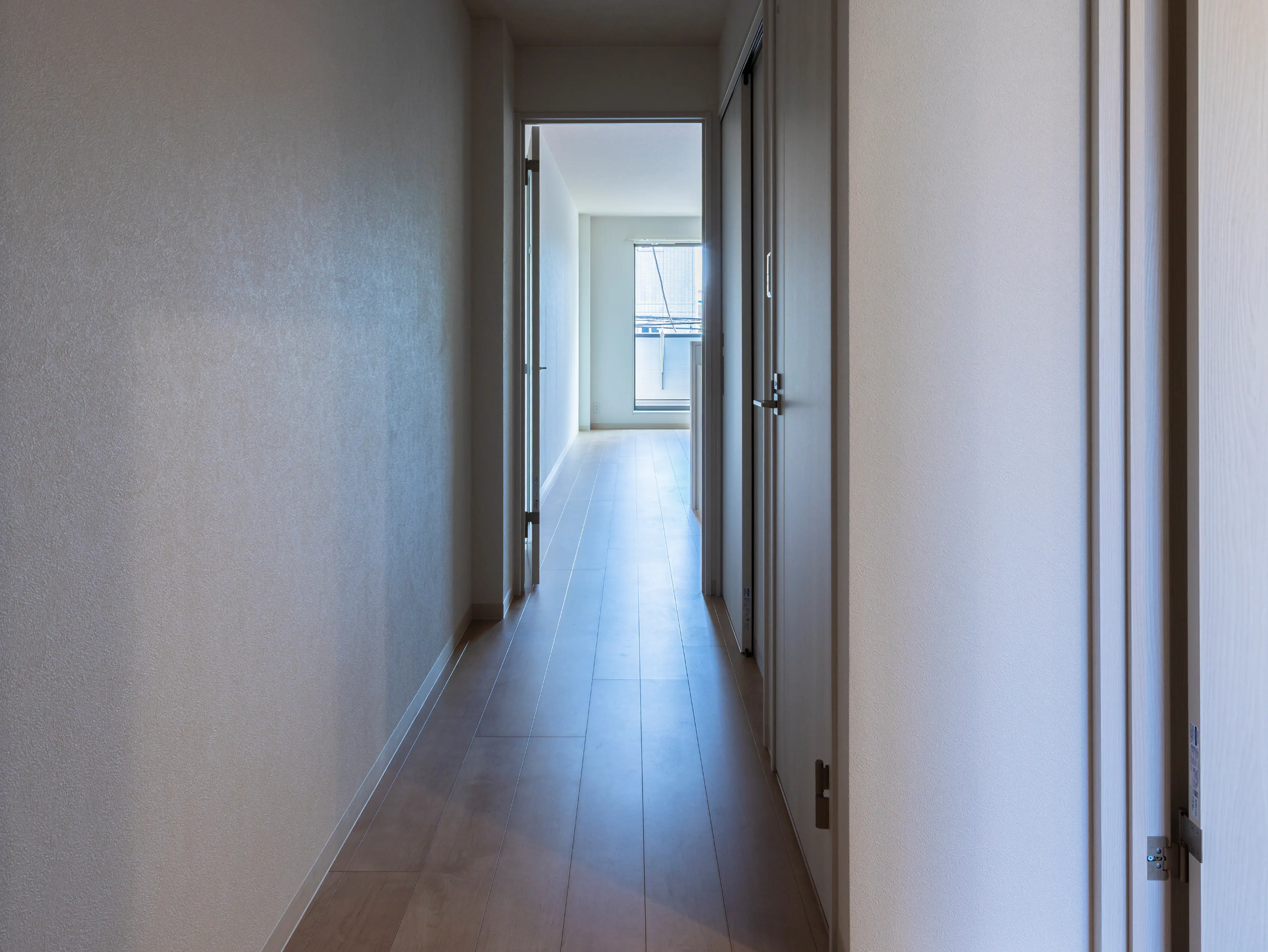 住戸は、明るく清潔感のある内装で統一し、心地よい木目のフローリングと柔らかな照明が、落ち着きある暮らしを演出します。廊下からリビング、バルコニーまで視線が抜ける構成は、面積以上の広がりを感じさせ、住む人に安心感と開放感を提供します。
