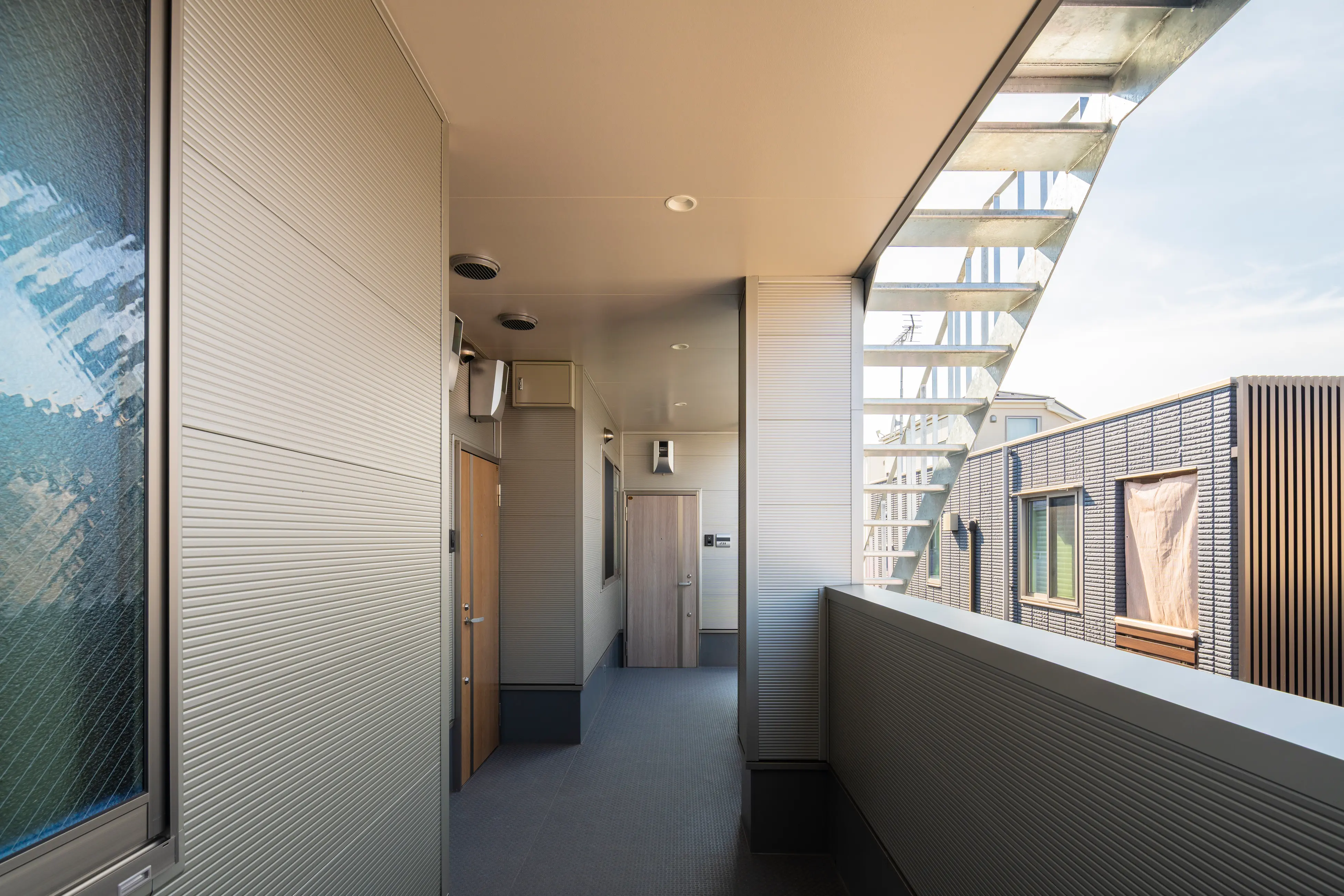 弊社が施工を一貫して手がけた、市川市の共同住宅プロジェクト。1階には地域のにぎわいを担う飲食店、そしてその脇を通り抜けた先の外階段から2階へと上がれば、全4戸の住居が静かに広がります。街の喧騒と穏やかな住空間が共存する、開かれた都市型住宅のかたちを目指しました。