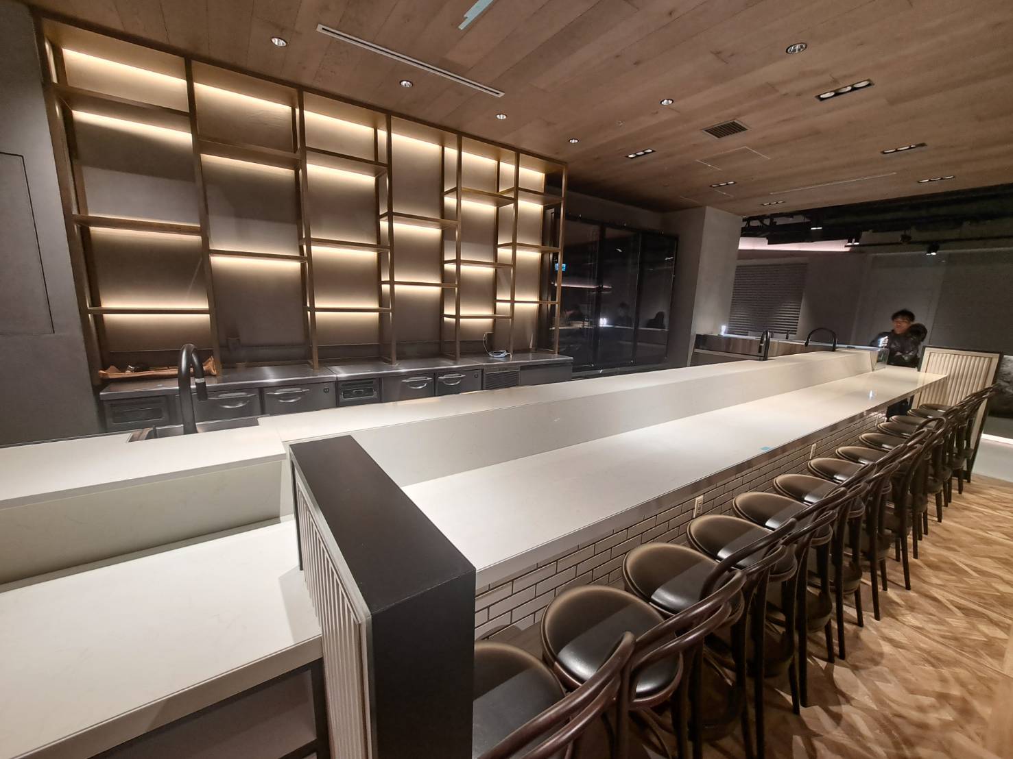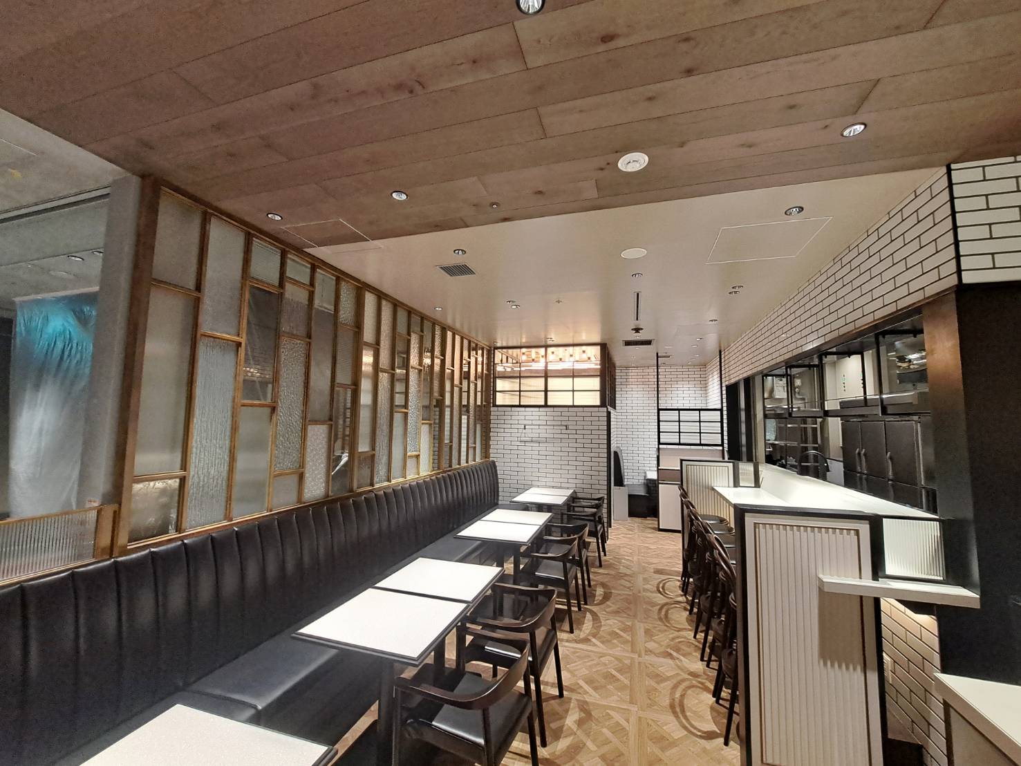 多様な素材と繊細な意匠が求められる空間だからこそ、下地から仕上げの質感に至るまで、ひとつひとつ丁寧に積み上げ、かたちにしてまいりました。高輪ゲートウェイの新しい賑わいのなかで、訪れる方々にとって「海の恵みと出会う、特別なひととき」を育む場となることを願っています。